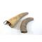 Bonjour, la corne avec le crochet est un outil ancien utilisé par les faucheur pour réaffuter leurs faux . Elle est accroché à la ceinture, remplis d'eau et on y mettait la pierre a affûter . C'est en général accompagné de 3 ou 4 petite enclume de forme différente pour retaper la faux quand elle heurte une pierre ou autre et d'un marteau a formé bien spécifique, il a 2 pannes de taille différente qui forme un genre de trapèze