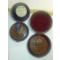 Lot de deux médaillons dans leur boîte. Médaillons en bronze (gravage tranche), boîtes en bois et plaquage, feutrine, ruban :