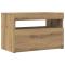 Caractéristiques techniques : Couleur : chêne artisanal Matériaux : bois d'ingénierie Dimensions hors tout : 60 x 35 x 40 cm Avec 1 porte et 1 compartiment Assemblage requis : oui