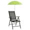 Caractéristiques techniques : Couleur : vert Matériaux : acier, 170T polyester Dimensions hors tout : 105 x 105 x 90 cm Diamètre du mât : 8 mm Avec pince Nervure galvanisée Convient à presque toutes les chaises Facile à transporter