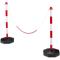 Barrière de signalisation avec chaînes o Socle remplissable avec du sable ou de l'eau o Blanc et rayures rouges pour bonne visibilité o Socle peut se remplir avec du sable et eau o Pratique pour délimiter ou bloquer lors d'un évènement, un parking etc