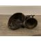 La taille est de 15 cm et 340 grs pour l'une et de 11 cm et 370 grs pour l'autre environ.