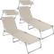 Lot de 2 transats bain de soleil acier beige 2208188