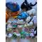 Peluches en bon état général. Les plus grandes sont le poisson L 49 cm - l 30 cm - H 28 cm et le dragon L42 cm-l 15 cm-H 28 cm.