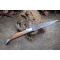 Le Moyen : Longueur fermé 10cm - Longueur ouvert 18.5cm - Platines du manche en laiton - Mitres en nickel - Plaquettes du manche en bois - Ressort du dos guilloché avec abeille - Lame en damas 128 couches - Les dessins de la lame sont comme une empreinte, ils sont uniques - Système à cran forcé - Ouverture à 2 mains