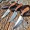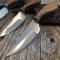 Lot de 3 Couteaux Bushcraft Skinner - Longueur totale 11.11cm - Longueur de lame 5.39cm - Lame en acier inox - Construction d'une seule pièce - Full Tang - Plaquettes du manche en bois - Etui Cuir