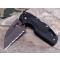 Cold Steel nous livre une version du stiletto italien sous stéroïdes, et contrairement aux versions automatiques italiennes faites dans des aciers 420 de basse qualité avec un profil de lames impossible à affûter, Cold Steel en fait un couteau utilisable avec un verrouillage de lames beaucoup plus solide et une gueule incroyable qui ne laisse pas indifférent. L'ouverture de la lame est très souple, un simple coup de poignet, une impulsion suffit à l'ouvrir. De plus, ce couteau dispose du système Emerson à ouverture en sortie de poche par friction sur le bord des vêtements.