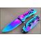 Lot de 3 Couteaux Tac Force Linerlock A/O Rainbow pliant - Système à ouverture assistée - Longueur ouvert 16.51cm - Longueur fermé 9.52cm - Longueur de lame 6.98cm - Lame en acier 440 finition Rainbow Arc en Ciel - Manche en acier finition rainbow - Fonction brise vitres & coupe ceintures - Ouverture d'une main avec le thumb & le flipper - Système de sécurité linerlock - Clip de poche