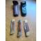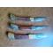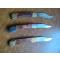 Lot de trois couteaux "chasse" pliants. Lame 10cm. Occasion, mais bon état fonctionnel. Seulement deux étuis pour porter à la ceinture(État moyen) Petit prix. A saisir.