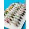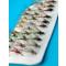 Description technique : Assortiment complet de 32 mouches noyées (style León) montées sur hameçons avec ardillon.