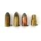 Lot de 4 cartouches anciennes à broche, dont une rare à blanc, en calibre 7 mm.