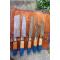 Lot de 5 Couteau de Cuisine Style Japonais Lame Acier Damas 256 Couches Housse Cuir Fab Artisanale