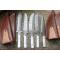 Longueur totale 19cm environ - Longueur du tranchant 10.5cm environ - Lame avec soie - Lame en acier damas 256 couches - Manche à monter - Fabrication Artisanale - Etui Cuir