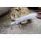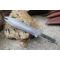 Longueur totale 19cm environ - Longueur du tranchant 10.5cm environ - Lame avec soie - Lame en acier damas 256 couches - Manche à monter - Fabrication Artisanale - Etui Cuir