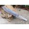 Longueur totale 19cm environ - Longueur du tranchant 10.5cm environ - Lame avec soie - Lame en acier damas 256 couches - Manche à monter - Fabrication Artisanale - Etui Cuir