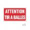 Lot de 5 Panneaux ATTENTION TIR A BALLES Aluminium 30 x 20cm
