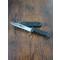 Description : Couteau de marche de style classique. Poignée en polymère noir avec texture diamantée, garde courbe vers le bas et pommeau argenté.