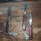 Tout est dans le titre de l'annonce, Lot de 5 couteaux pliants 1 grand monolame usée, autres multilames - PRADEL et AT
