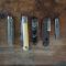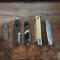 Tout est dans le titre de l'annonce, Lot de 5 couteaux pliants dont 1 multilames 1 plaquettes en os, 3 en acier, 1 en plastique.