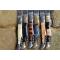 Longueur fermé 12cm - Longueur ouvert 22.50cm - Platines en nickel ou laiton - Mitres en laiton ou nickel - Plaquettes du manche en bois / corne /Os - Tire bouchons - Ressort du dos guilloché avec abeille - Lame en damas 128 couches - Les dessins de la lame sont comme une empreinte, ils sont uniques - Système à cran forcé - Ouverture à 2 mains