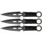 3 Set de 3 couteaux de lancer fixes - Longueur totale 16.51cm - Longueur de la lame 8.25cm - Couteau construit d'une seule pièce - Couteau en acier inox teint en noir - Manche en cordelette - Etui en nylon