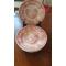 Elles n'ont jamais servi donc pas de tache ni égrenure ni rayure. 6 assiettes anglaises creuses diamètre 23,5 cm hauteur 3,5 cm. Décors paysage. Série Burengand. En faïence rose. Rare dans cet état.