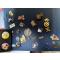 Lot de 94 pins tous différents avec support : voitures, publicités, AVON, banques, motos, etc en très bon état.