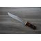 Grand couteau bowie ancien, vintage, fabriqué par C.J.H. (Herbertz) Rostfrei, ORIGINAL BOWIE KNIFE en lettres gothiques, double garde large, garnitures laiton, montage plate semelle avec plaquettes en bois rivetées, étui de ceinture en cuir. Ensemble en très bon état de collection, voir photos descriptives. Longueur totale 37cm - Longueur de lame 25cm - Epaisseur 4mm.