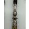 • Manches en corne véritable blonde et brune, viroles richement travaillées avec motifs de médaillons et feuillages.