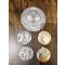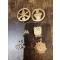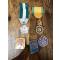 Dimensions variées : médailles 30-50 mm, pins 20-40 mm. Poids total estimé ~500 g.