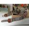 Une cartouchière en toile réglable avec fermoir et interstices pour cartouches en cuir. Fonds des interstices décousus.