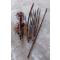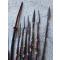 Lot d'armes blanches Africaines comprenant un arc sans cordes un carquois avec 3 flèches une lance forgée et 6 sagaies forgées dont une avec le manche cassé. Un trés bon travail de forge sur les lames.
