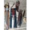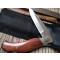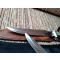 5-Couteau de chasse droit et lame fixe inox 17cm, manche bois de cerf, fourreau cuir brun en parfait état
