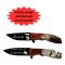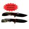 Chaque couteau mesure 21,5 cm de longueur totale, offrant une excellente prise en main grâce à un manche ergonomique illustré de motifs camarguais. Le design est soigné, avec une finition en bois qui apporte une touche de rusticité et de raffinement. L'acier de la lame garantit une grande durabilité et une résistance à la corrosion, ce qui en fait un compagnon fiable pour vos escapades en nature.