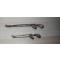 Lot de deux sewars indonésiens, lames forgées et décorées à la main, milieu du XXe siècle. Les manches et les fourreaux sont fabriqués à partir d'une sorte de résine naturelle et décorés d'argent probablement de faible qualité, à en juger par le fait que le métal noircit avec le temps.