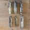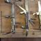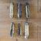 Lot indissociable de 6 couteaux pliants multilames poignée corne ou imitation (je pencherai davantage pour du synthétique genre plastique imitation corne, mais pas sûr pour tous...).