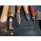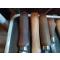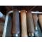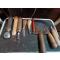 Lame en acier , manche en bois , lot de 8 outils de coupes et une roulette lisse . Voir les formes diverses des lame ayant probablement plein d'usage différents.