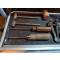 2 très petits marteaux en acier , 3 petit maillets bois toutes les surfaces de travail sont très propres ,et 2 petits étau a main Idem