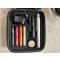complet avec sacoche, kit entretien, pot graisse, jeu de clés, 1x adaptateur mural CE, 1x adaptateur mural US, cable usb-C, seconde batterie de secours