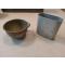 Lot composé d'une tasse en métal blanc et d'un quart en aluminium date 1941 et nom du fabricant, ainsi qu'une gravure du soldat L.J le 10 octobre 1944