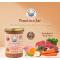 La composition du produit : 70% bœuf (80% : viande musculaire, 20% : cœur, rognons, tripes, foie), 7% patates douces, carottes, petits pois, pommes, 3% brocoli, huile de saumon, cynorhodon, algues chaux, levure de bière, poudre d'algues, romarin | Composants analytiques : Protéines brutes 18.6 %, huiles brutes et matières grasses 8.8%, humidité 63.4 %, cendres brutes 2.7 %, fibres brutes 0.8 % | Calories : 120 kcal/100 g. Un bocal pèse 400g.