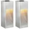 Lumière de Chemin LED Solaire 2 pcs Argenté GalvaniséCette lampe de chemin solaire à LED combine avec style un design moderne et une technologie solaire, parfait pour illuminer jardins et allées. Sa forme rectangulaire et son look minimaliste en font un choix top pour les espaces contemporains, alliant fonctionnalité et esthétique. Elle utilise des panneaux solaires super efficaces pour capter le soleil, stockant l'énergie pour offrir un éclairage LED blanc chaud dès la nuit tombée. Idéale pour ceux qui veulent un éclairage facile à installer et qui font attention à la planète. Construction résistant aux intempéries La lampe de chemin solaire est faite d'acier durable, ce qui lui permet de résister à toutes sortes de conditions extérieures. Sa qualité assure une bonne longévité, parfaite pour ceux qui veulent un éclairage fiable et sans entretien. L'acier offre une meilleure résistance aux éléments, prolongeant ainsi la durée de vie de ces lumières dans les espaces résidentiels et commerciaux. Éclairage solaire polyvalent Ces lampes s'allument et s'éteignent automatiquement selon la luminosité ambiante. Plus besoin de gérer manuellement, c'est super pratique et ça permet d'économiser de l'énergie. Parfaites pour éclairer chemins, jardins et terrasses, elles améliorent à la fois la sécurité et l'ambiance de vos extérieurs. Portabilité alimentée par batterie Chaque lampe dispose d'une batterie rechargeable à énergie solaire, offrant plus de 8 heures d'éclairage sur une charge. Sa portabilité vous permet de les placer où vous voulez, sans soucis de câbles. C'est parfait pour les utilisateurs qui veulent un éclairage flexible. Design autoportant moderne Son design sans câbles simplifie l'installation dans tous les espaces extérieurs. Son style épuré complète les décors modernes tout en fournissant un super éclairage des chemins. Assemblage simple Assemblage facile avec juste un tournevis. Deux personnes peuvent l'installer rapidement, garantissant que tout soit prêt à l'emploi sans efforts. Veuillez lire et comprendre toutes les instructions contenues dans ce manuel avant d'installer la tête d'éclairage solaire. AVERTISSEMENT : utilisez uniquement des piles rechargeables NiMH avec ces lampes solaires. Ne mélangez pas les types de piles. AVERTISSEMENT : n'ouvrez pas, ne court-circuitez pas et ne mutilez pas les piles, car cela pourrait causer des blessures. Les piles doivent être recyclées ou éliminées de manière appropriée. Les piles ne doivent pas être ouvertes ou brûlées. L'exposition aux composants qu'elles contiennent ou à leurs produits de combustion peut être nocive. Sachez que les piles peuvent causer des dommages tels que des fuites, des incendies ou des explosions lorsqu'elles sont mal utilisées ou défectueuses. Veuillez toujours placer les piles dans un endroit ignifuge afin d'éviter tout accident. Tenir hors de portée des enfants. Veuillez porter des lunettes de sécurité, des gants, des chaussures de sécurité et un casque (protection de la tête) lorsque vous installez l'abri de jardin. N'installez pas l'abri dans des conditions météorologiques extrêmes, telles que des vents violents ou des températures basses. En raison des caractéristiques du produit, les bords de certains accessoires sont tranchants. Veuillez l'assembler avec précaution afin d'éviter toute blessure. Une fois assemblé, le produit fini ne présente plus de bords ou d'angles tranchants. Vous pouvez donc l'utiliser en toute sécurité. Ne laissez pas les enfants et les animaux domestiques s'approcher de la zone d'assemblage. Il est recommandé d'assembler ce produit sur un sol plat. Lorsque vous ajoutez de la terre au produit, veuillez la répartir uniformément (l'utilisation d'une pelle est recommandée) afin d'éviter que la quantité importante de terre ajoutée ne cause des dommages aux tirants et aux panneaux internes.