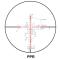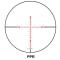 Réticule gradué au premier plan focal, la taille du réticule varie selon le grossissement comme l'image de la cible, simplifiant ainsi les calculs de corrections de tir.