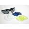 Différents verres de couleurs : Verre fumé, verre scarabée, verre jaune et verre transparent.