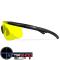 Ces lunettes sont livrées avec une lentille jaune, qui peut être remplacée facilement, et a une transmission lumineuse de 82 %. L'objectif améliore le contraste dans les situations de faible luminosité et filtre également la lumière bleue en grande partie, qui est la principale cause d'éblouissement et de brume.