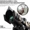 Ajustement du vent et de l'élévation par billes et roulements pour plus de précision 100% résistant aux chocs et au recul, rempli d'azote, résistant aux chocs, à la brume et à l'eau Corps de qualité aéronautique 6061 T6 Objectif : 32 mm Pupille de sortie (mm) : 8 Soulagement des yeux (mm) : 89