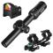 Petite lunette mixte avec réticule éclairé rouge ou vert, de fabrication Chinoise, tourelles tactiques, colliers inclus. De qualité sans plus car à moins de 200€ FP inclus il ne faut pas s'attendre à des miracles. Cependant optique très claire même par temps pluvieux (ça ne va pas au delà) idéal pour le tir de 50 à 100 M. en stand ou en battue, convient pour des petits calibres (perso 22 WMR) et pour acheteur n'ayant pas un gros budget mais voulant une lunette de tir claire avec un réticule bien fait.