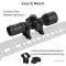 Ajustement rapide : le réticule en croix facile à voir et la conception de l'oculaire à mise au point rapide peuvent évidemment augmenter la précision. Doigts ajustant les tourelles sans outils, avec une valeur de clic de 1/4 MOA.