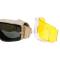 Le pack inclut trois écrans interchangeables. Utilisez le verre fumé en extérieur par temps ensoleillé. Passez au verre jaune pour augmenter les contrastes en sous-bois ou par temps couvert. Le verre transparent est idéal pour le jeu en CQB (intérieur) ou de nuit.