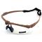 TanTraitement anti-buéeTraitement anti-rayureFournies avec un élastique pour régler les lunettes à sa tailleDesign plus travaillé, contour noir ou tan et écran clearProtection UV400Conformes à la directive EN166Livrées avec un étui en tissu